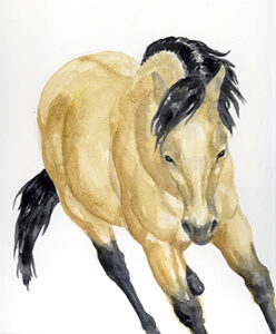 Then at 12:30pm, huddle with us for a special demonstration of watercolor techniques used by Bowen Director, Ginny Greenwood. Watch her steps to complete her project. And hopefully, you will the learn the benefit of this wonderful medium and love using it too! Below is a sample watercolor or her favorite subject, HORSES!!