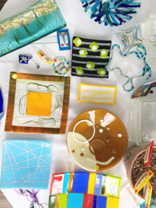 Springtime is the perfect backdrop for our wonderful glass display brought to us by students of instructor, Kelly Thames of the Spruill Arts Glass Department in Dunwoody, GA. Study the intricate and fascinating details of each work and how it is transformed into a unique style and color. It must be extremely exciting and engaging to work with this medium.